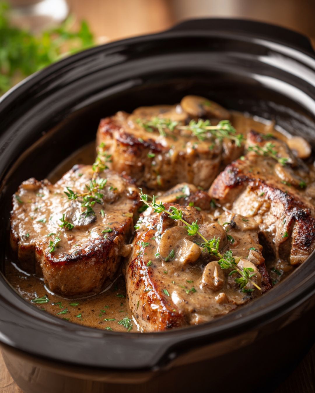 Varkenskarbonades met ui uit de slowcooker met slechts 3 ingrediënten